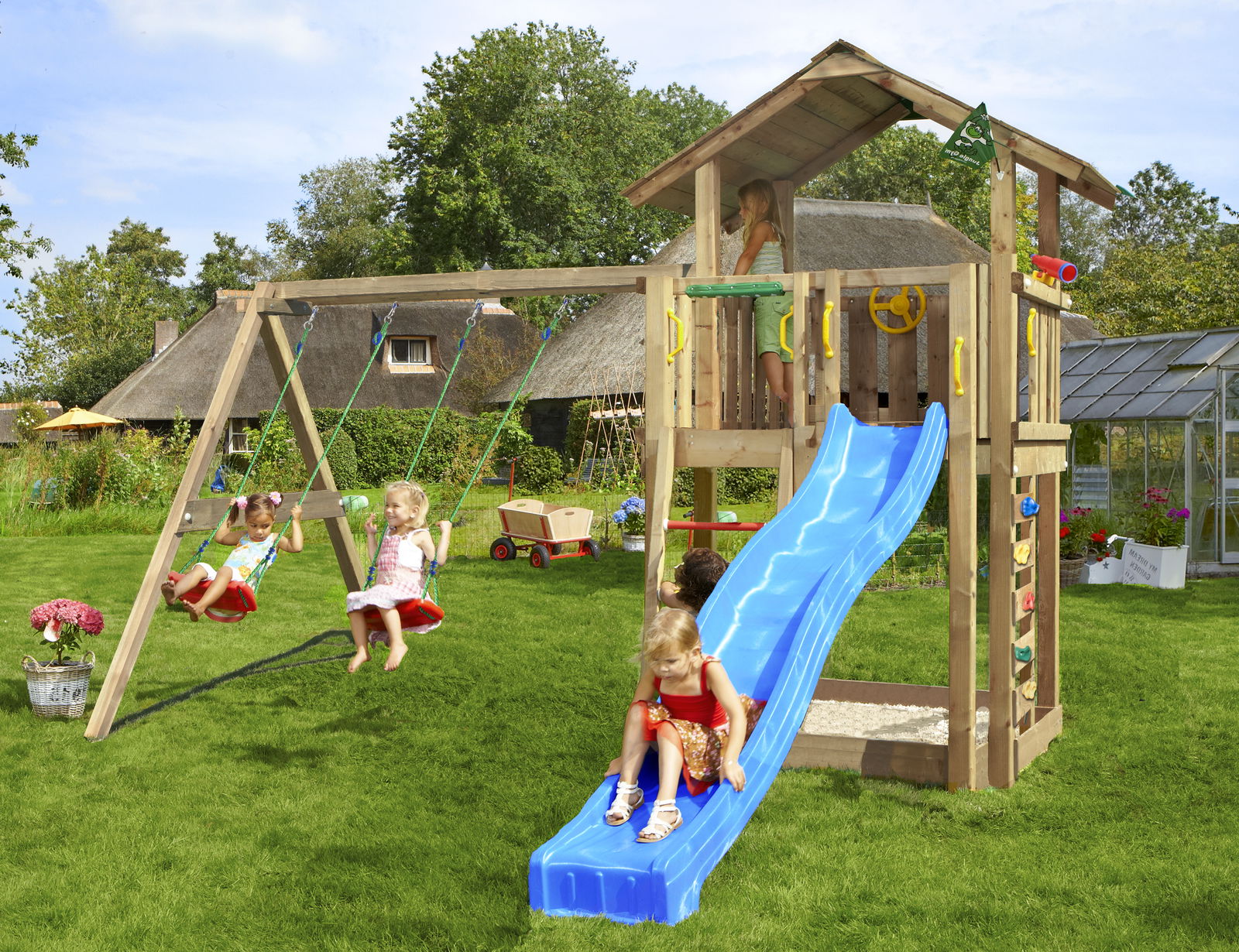 Jungle Gym Hut legetårn inkl. swing modul og rutschebane