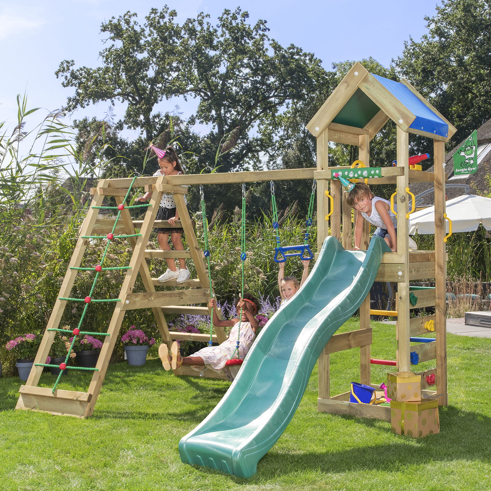 Jungle Gym Patio legetårn komplet inkl. klatremodul 2 og blå rutsjebane