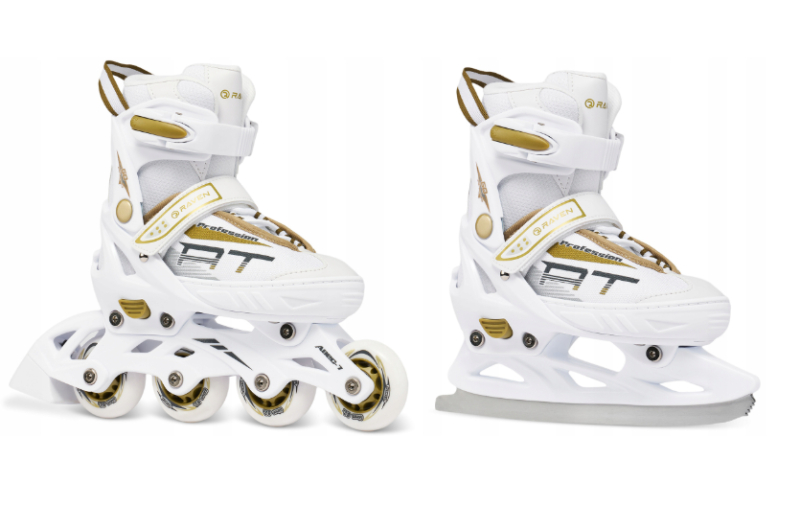 Raven 2i1 Profession Rulleskøjte White GOLD MED ISSKØJTE