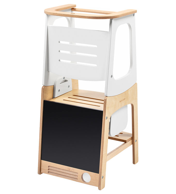 En anden praktisk funktion er trin-omdannelse, hvor tårnet kan forvandles til en lille stige. Det giver ekstra fleksibilitet, så det ikke kun kan bruges i køkkenet, men også i andre rum, hvor barnet har brug for et sikkert løft.